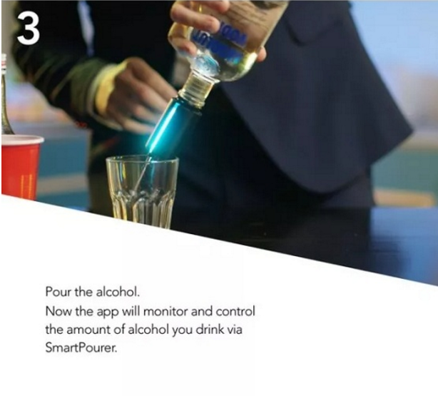 Selepas menggunakan penyumbat ini, setiap kali anda menuang wain akan dikesan oleh SmartPourer dan data yang berkaitan akan disegerakkan secara automatik ke aplikasi melalui Bluetooth. SmartPourer menyimpan data pengambilan alkohol anda dan memaparkannya pada telefon anda dalam bentuk peta keselamatan. Ia akan memaklumkan anda apabila anda mungkin mabuk.