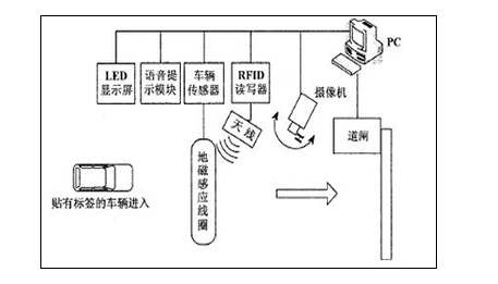 Sistem pengurusan pintar kenderaan RFID Ia merupakan penyepaduan teknologi RFID. Teknologi pengurusan komputer dan kawalan automatik dalam penyepaduan sistem pengurusan pintar kenderaan moden, ia dapat memenuhi keperluan pengurusan maklumat kenderaan moden, automatik dan pintar. Sistem rangka kerja seperti gambar di bawah. Sistem ini berkomunikasi antara PC dan pembaca RFID, membaca maklumat kereta dengan kad RFID (tag). Kemudian, sahkan identiti sah kenderaan.