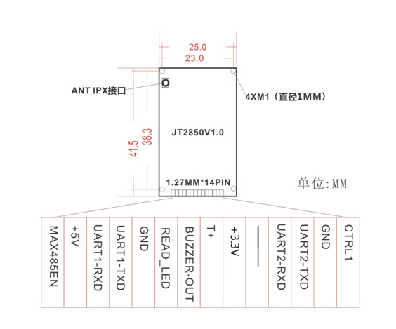 JT-2850 Ia merupakan modul baca/tulis kecil berkuasa ultra rendah yang menyokong protokol ISO 18000-6C. Ia serasi dengan antena seramik 40x40mm dan boleh membaca kad putih biasa. Nilai yang diukur boleh mencapai 60~80cm.Ia boleh dengan mudah dibenamkan ke dalam terminal pegang tangan seperti tablet dan PDA untuk merealisasikan fungsi pengembangan RFID peranti sedemikian, dan digunakan secara meluas dalam bidang lain seperti pengurusan logistik, pemeriksaan kualiti produk, pengurusan kakitangan dan sebagainya.
