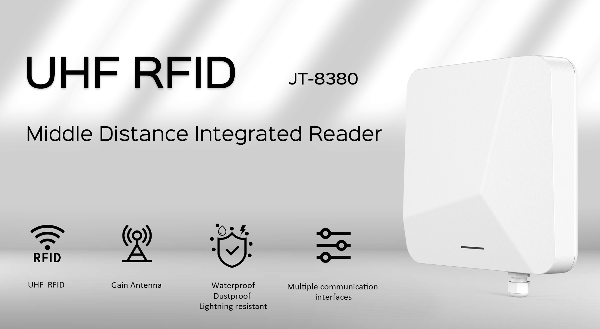 Pembaca Bersepadu JT-8380 0-6m UHF RFID 902-928MHz Julat Tengah