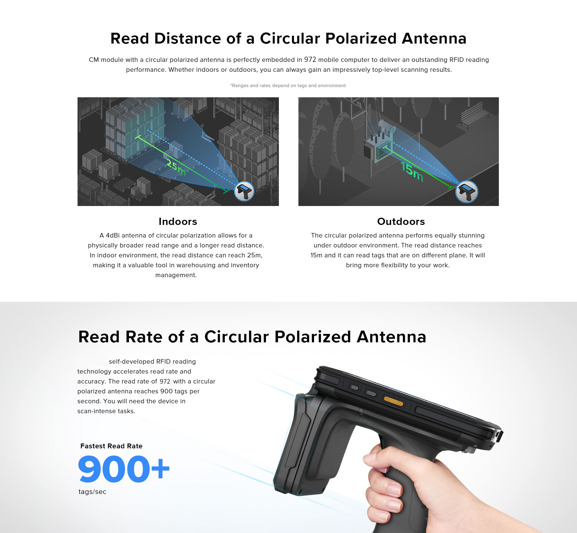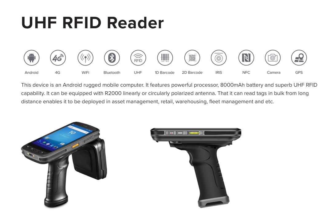 Pembaca Senapang RFID UHF Jarak Jauh Untuk Pengurusan Aset