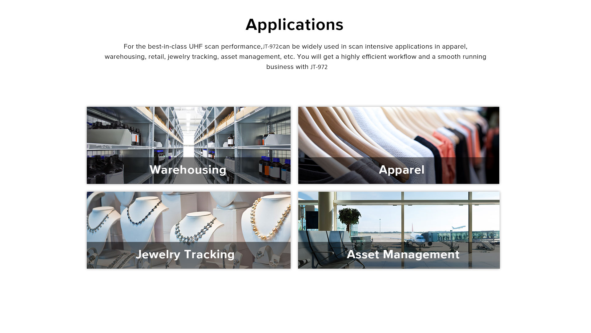 Peranti JT-972 ialah komputer mudah alih lasak Android. Ia mempunyai pemproses berkuasa, bateri 8000mAh dan RFID UHF yang hebat. keupayaan. Ia boleh dilengkapi dengan antena terkutub linear atau bulat R2000. Bahawa ia boleh membaca tag secara pukal dari jarak jauh